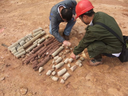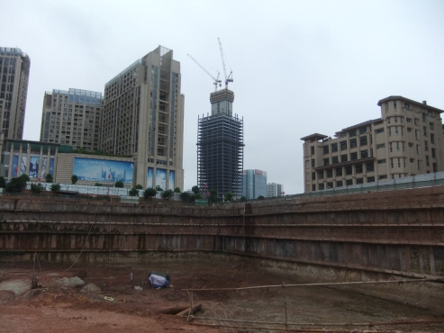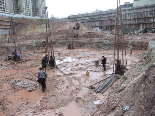 南宁市龙光世纪工程位于南宁市东盟商务区中柬路与中菲路交叉路口的南侧地块(即利海亚洲国际小区东侧、盛天华府小区南侧),建筑物由塔楼A(1#塔楼)、塔楼B(2#塔楼)、裙楼及纯地下室构成,建筑物地基基础设计塔楼A和塔楼B拟采用筏板基础或桩基础、裙楼及纯地下室拟采用柱下独立基础,以中风化粉砂岩⑤为基础持力层。基坑边坡采用排桩+锚索支护,基坑底面开挖标高约83.5~86.5m。本工程为属重要的公共建筑,破坏后果很严重、工程重要性等级为一级;场地地形地貌较简单,地下水对基础施工有不利影响,属二级场地(中等复杂场地);地基岩土种类较多,不均匀,性质变化较大,地基等级为二级(中等复杂地基),综合评价本次岩土工程勘察等级为甲级。本项目共完成钻孔93个,钻探总进尺2999.77m。