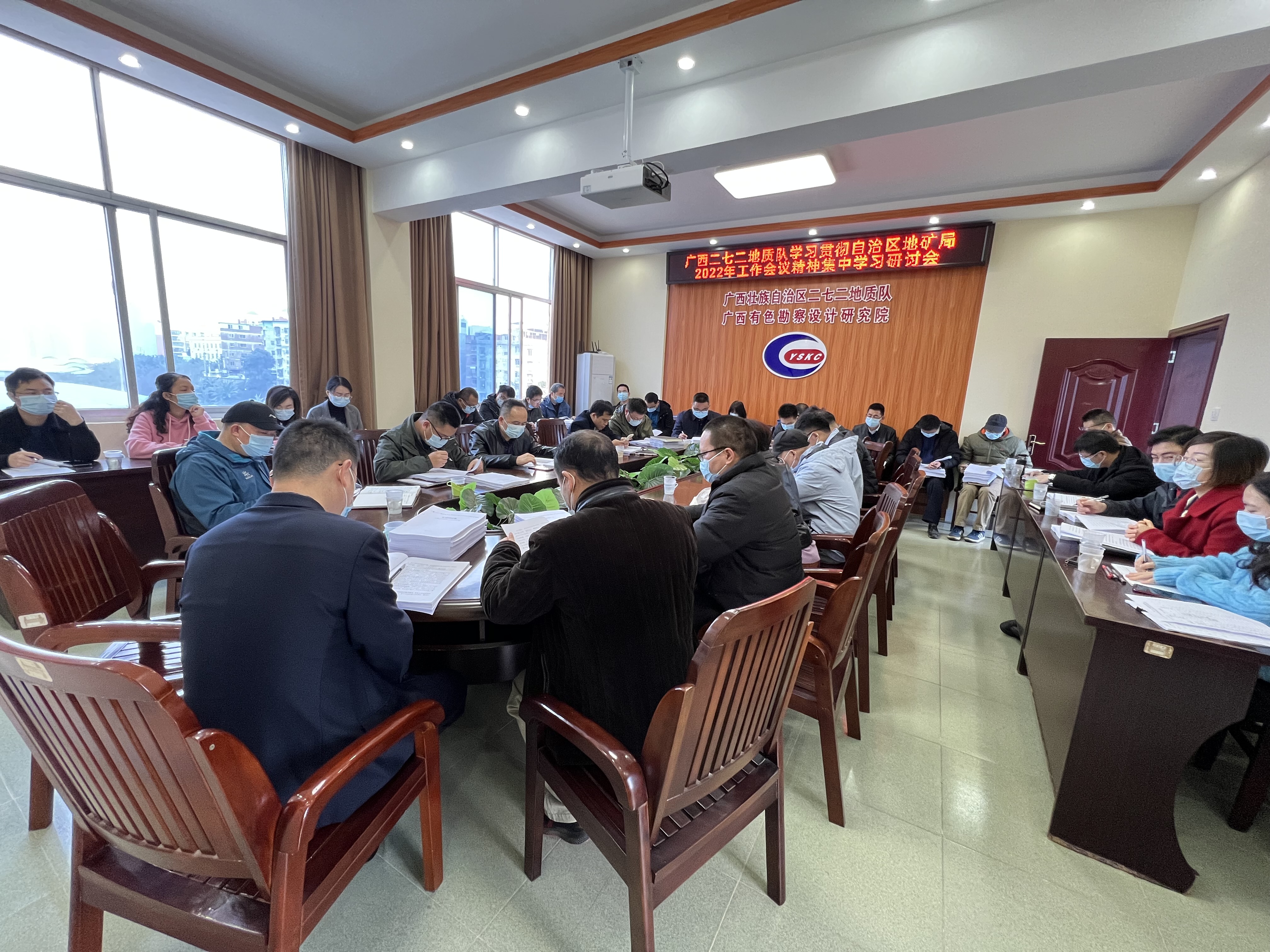 接下来,我院还开展了为期一周(2月28日-3月4日)的“2022年度中层干部培训班”,围绕“党的十九届六中全会和自治区第十二次党代会精神”、“2021年中央经济工作会议内容公报”、“广西自然资源十四五规划”、“钟自然、谢新义、李金发同志在2022年全国地质调查工作会议上的讲话”等22份2022年度各厅局印发的“十四五”发展规划和自治区重大项目部署进行了深入学习,对如何将创新技术有效转化为实际效益,如何更好地将技术服务到自治区基础设施建设、矿产资源勘查、地质灾害防治、生态环境治理、乡村振兴规划中进行了激烈研讨,定下了未来发展的主基调,全面推进了我院事业开启新篇章。