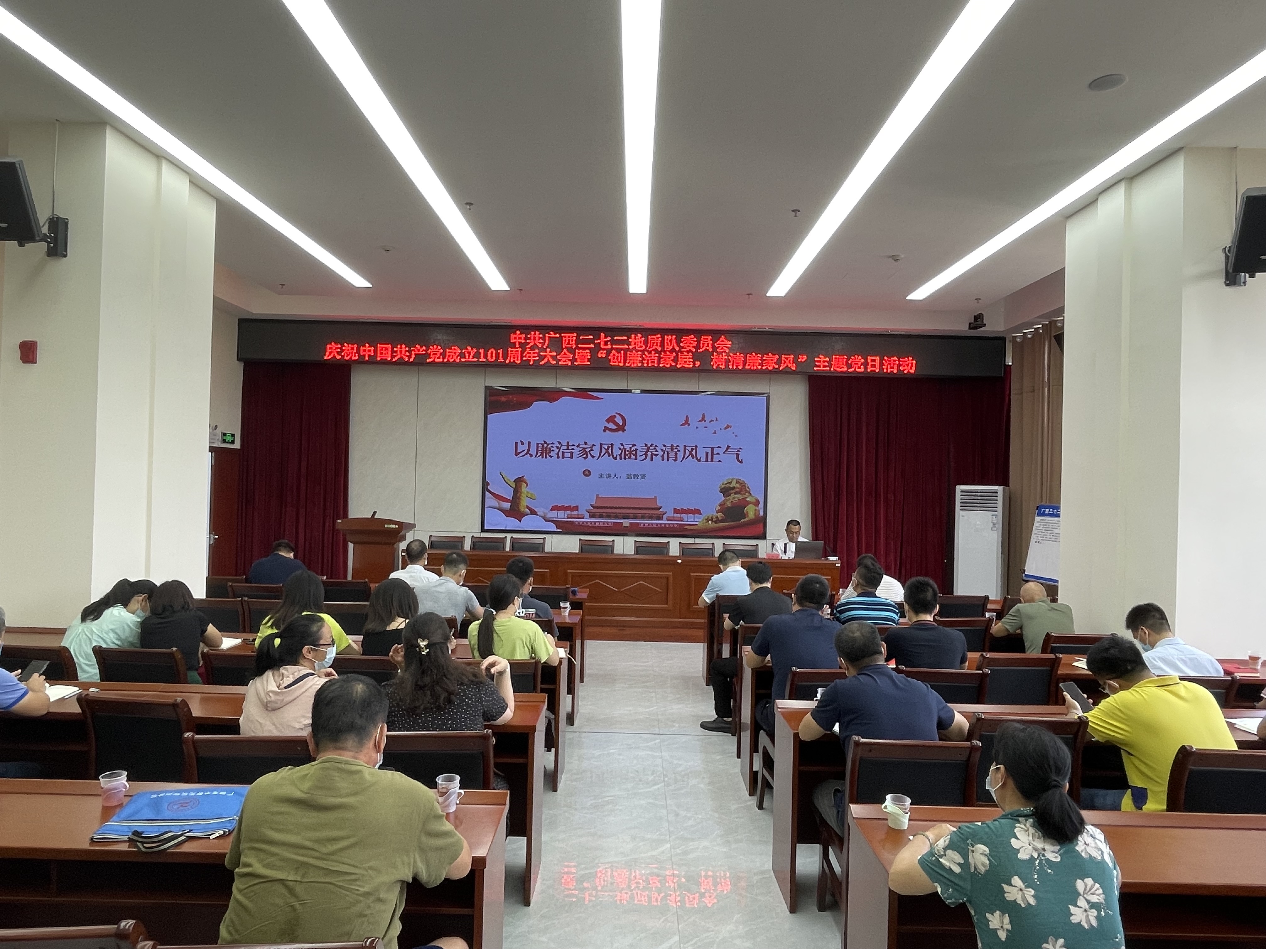 为庆祝中国共产党成立101周年,我队(院)7月1日上午举办了庆祝建党101周年大会暨“创廉洁家庭,树清廉家风”主题党日活动,队领导、13个在职党支部和4个离退休党支部的委员参加了本次大会。