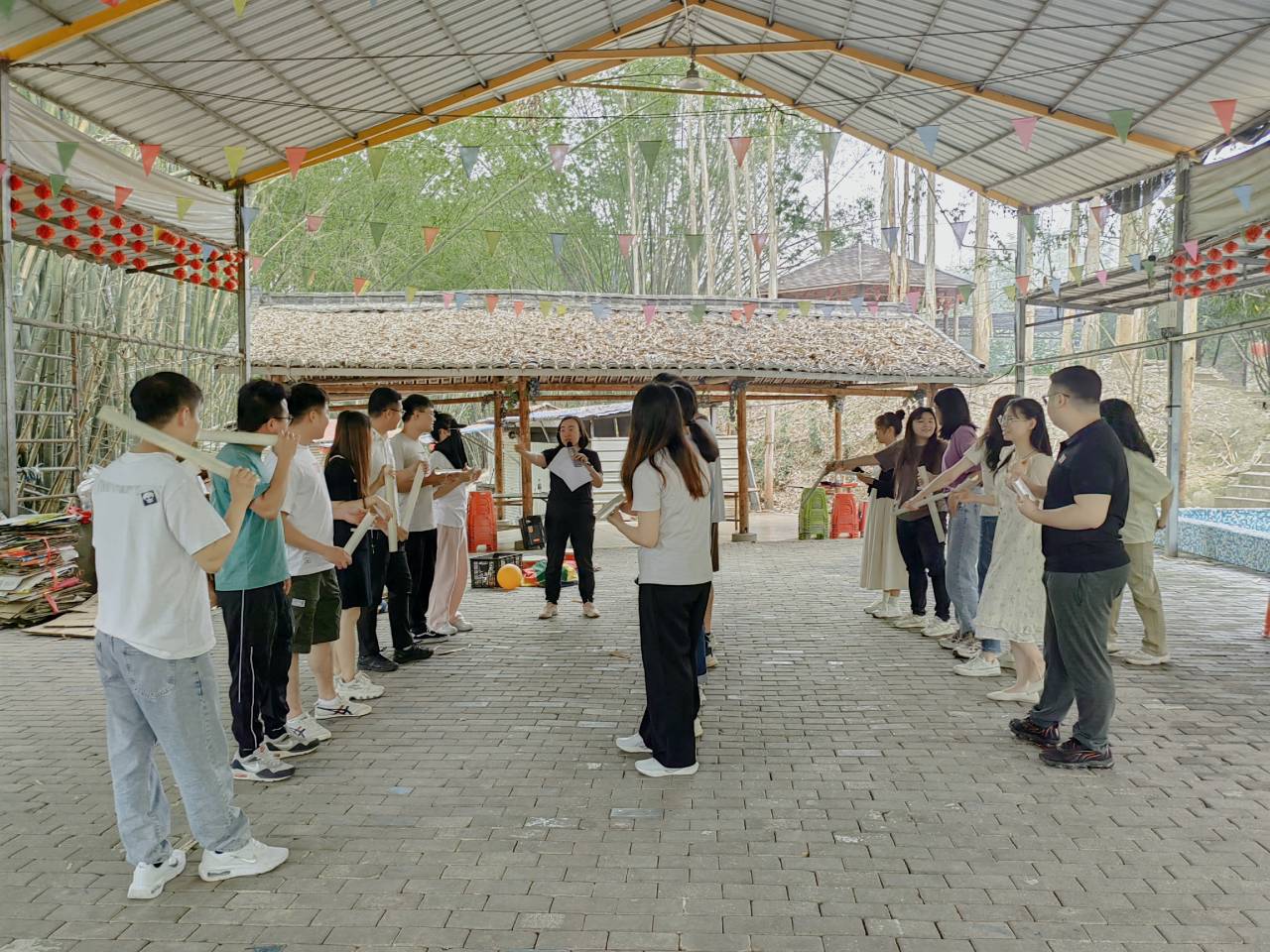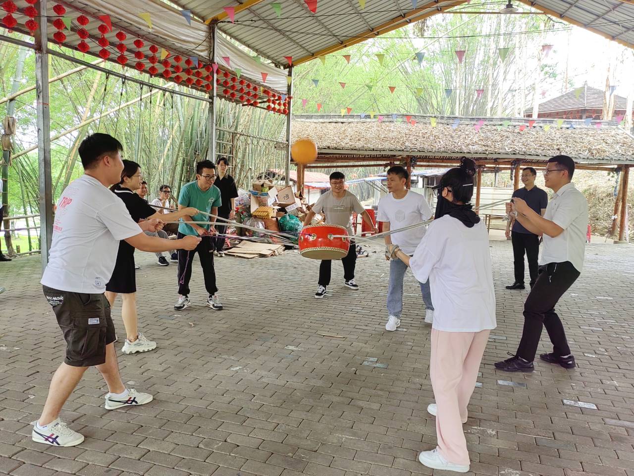 青年团课后,我院全体团员赴美丽江南庄园内开展了“承五四精神 学主题思想 扬青年风采”乡村振兴户外调研活动。我院全体青年分组比拼,首先进行了三人板鞋竞技,参赛青年一边竞走一边喊着“一二一”的口号,板鞋有节奏地拍打着赛道,有时队员配合不融洽,就出现了相继扯着倒下的状况,惹得场外爆笑不止。除此之外,我院还组织全员开展了乒乓球接力、击鼓颠球、袋鼠跳等竞技游戏,参赛队员们都拼尽全力完成一次次紧张的对决,周围呐喊加油声此起彼伏,现场洋溢着欢快的氛围。