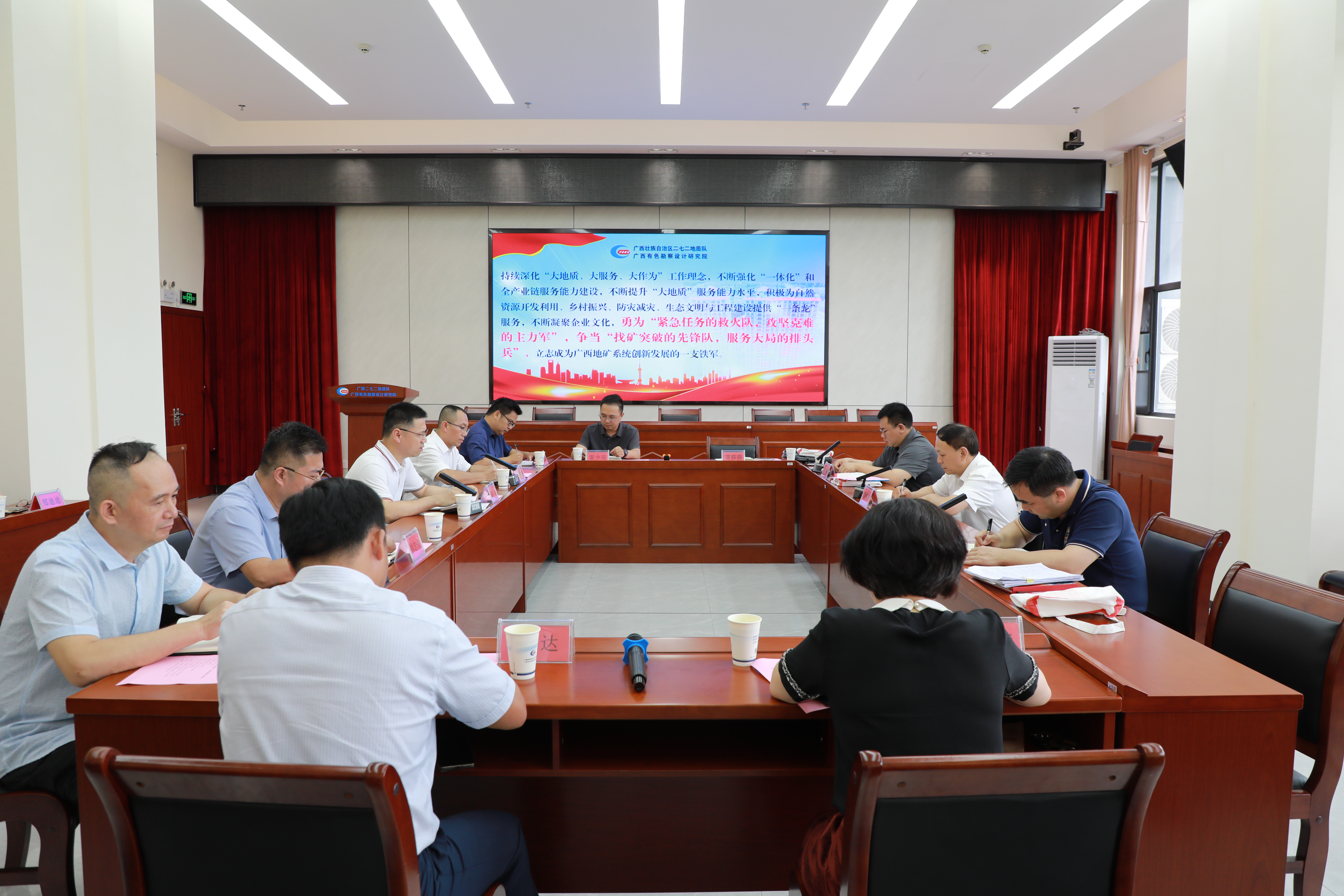 唐善茂与我院(队)领导班子及业务科室负责人座谈交流,会议汇报了今年以来生产经营情况、目标任务完成情况、党建工作情况及下一步工作计划,还汇报了开展新一轮找矿突破战略行动、人才队伍建设、地质科技创新、党风廉政建设等方面工作情况,沟通协商了我院(队)发展面临的问题和困难、需要协调事项,唐善茂逐条逐项给予指导并提出具体要求。