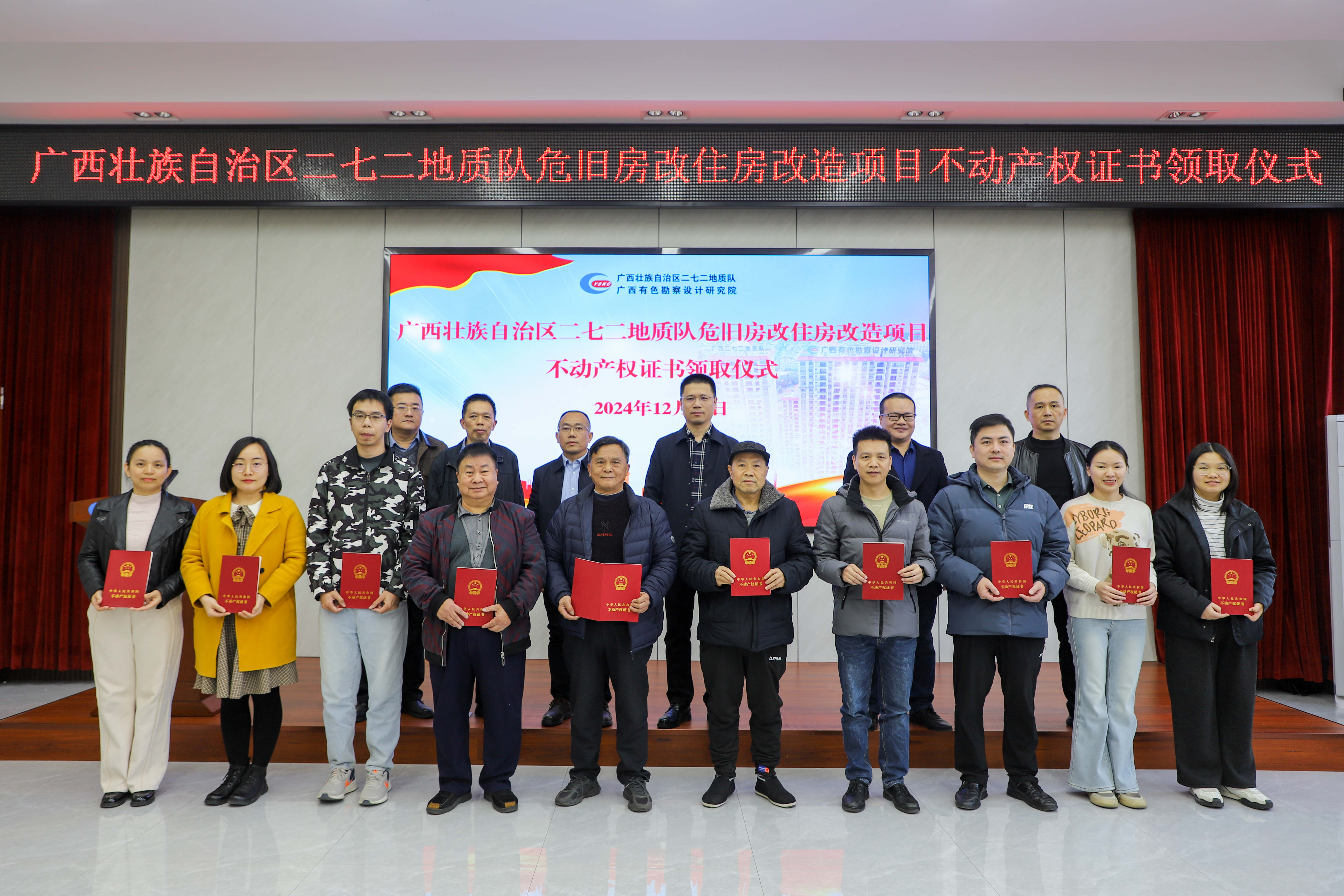 本站讯(廖德好 报道)“感谢单位那么多年对危改房项目工作的付出和努力,拿到这本期盼已久的‘证’,我们住得就更踏实更安心了。”居住在南宁市江南区槎路262号的我队(院)职工覃女士满意地说道。2025年4月9日至11日,我队(院)集中办理了危改房27、28A、28B号楼项目确认书签领工作,这标志着我队(院)已基本实现危改房项目办证全覆盖。