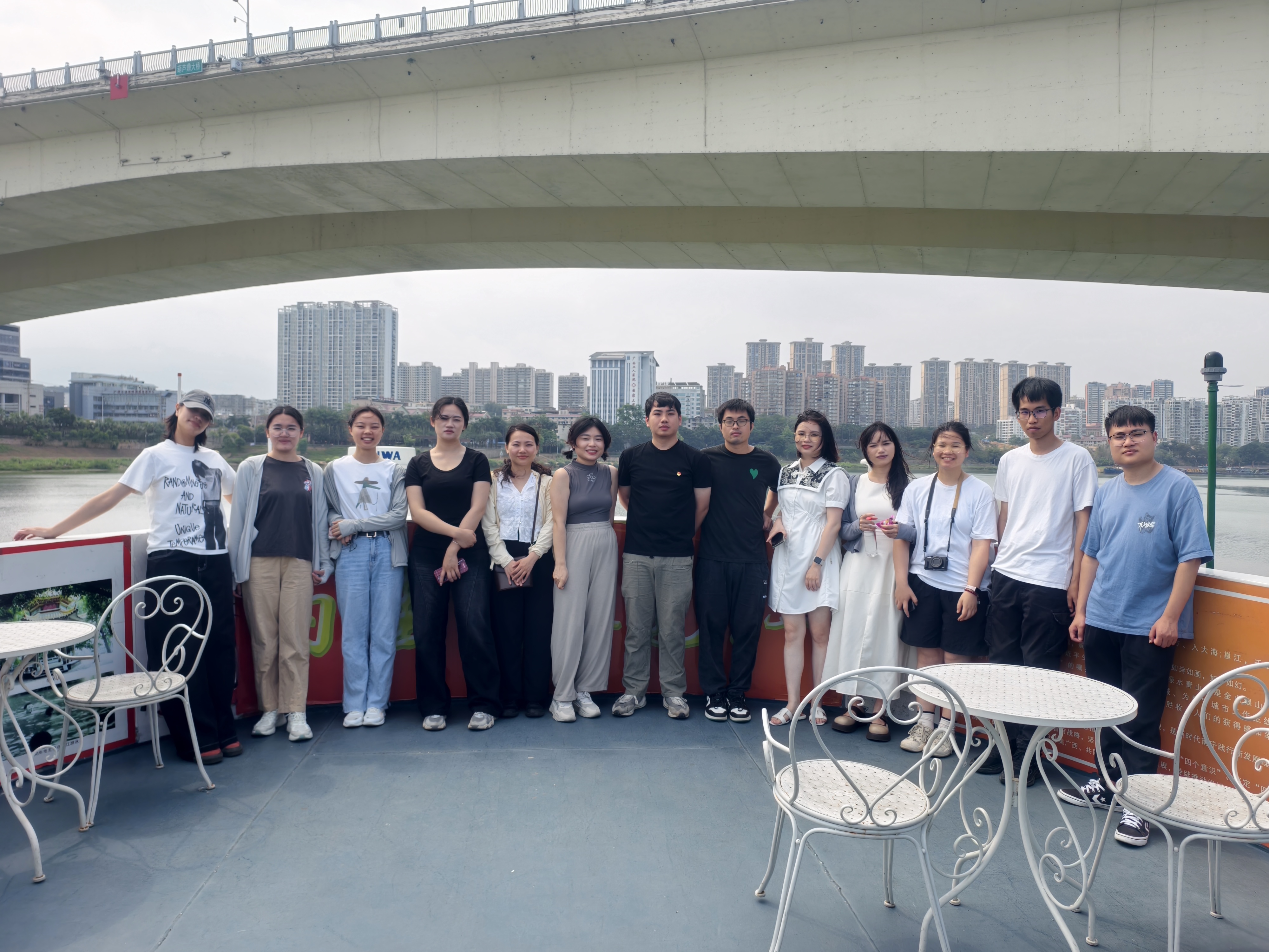 游船缓缓起航,途经冬泳亭、洋关码头、雷经天故居等南宁特有的红色地标,青年团员们凭栏而立,在讲解员的讲解下一边认真聆听讲解党的百年奋斗历程和南宁红色革命历史,一边欣赏着百里秀美邕江两岸的如画风光,在历史与现实的交织中,不断感悟着初心使命。随后,大家走进二层船舱的图书阅读区,这里陈列着《中国共产党简史》《习近平总书记关于党的建设的重要思想概论》等红色经典书籍,团员们或围坐交流,分享读书心得,探讨如何将红色精神融入地质工作;或独自静读,在文字间汲取奋进力量。最后,全体团员一同演唱了《没有共产党就没有新中国》经典红色歌曲,在歌声中深刻体会了党的百年奋斗艰辛与辉煌成就,更坚定了为地质事业发展贡献青春力量的信念。